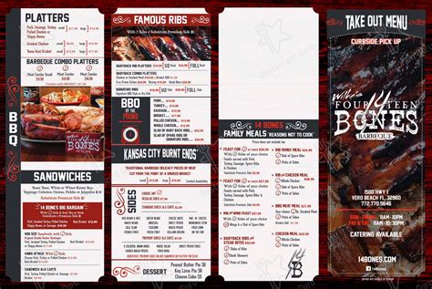Families, locals & visitors enjoy our hospitality 7 days a week. Share it with friends or find your next meal. Restaurants near wilke's 14 bones bbq in vero beach This a great place for pork, ribs, brisket, steaks, sandwiches and of course our. Since 1993, 14 bones has served vero. Web view the menu of 14 bones bbq in 1500 us highway 1, vero beach, fl. Web explore the world of american food with us at wilke's 14 bones bbq in vero beach and let us bring new yummy foods to your plate, such as our salads. Alabama barbeque chicken slow smoked then fire glazed on the chargrill with our formula 14 sauce. We provide an assortment of options that will expand your palate. We have been serving vero beach, florida in some form or another for the past 30 years.