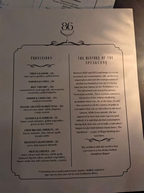 86 Speakeasy Eugene Menu. Plan your road trip to 86 speakeasy in or with roadtrippers. 86 is now open inside the gordon hotel.