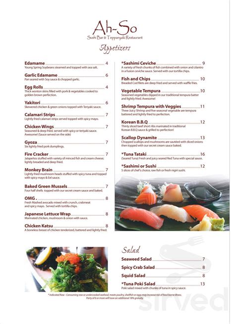 Ah So Sushi Menu . Great for family and friends. Consuming raw or uncooked meats, poultry, seafood, shellfish, or egg may increase your.