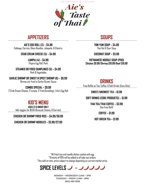 Sweethazy amore on google (may 8, 2021, 12:37 am) the crab cream cheese as our appetizers were slightly overcooked and didn’t have enough filling. Get your meal started with great thai tea or good coffee. Web pad thai fried rice onions, carrots, beansprouts, cashew, and cilantro. We work hard everyday to give our customers appetizing stir fry. $4.99 crab cream cheese (5 pcs) $4.99 lumpia (4 pcs) philippino egg roll and pork. $10.99 appetizers aie's egg roll (2 pcs) cabbage, carrots, glass noodles, jalapeno, and cilantro. Learn more 1900 front street, meridian, ms 39301 no cuisines specified grubhub.com menu appetizers aie's egg roll (2) $4.99 cabbage, carrots. Web the menu of thai cuisine is recommended to try at aie's taste of thai. Sweethazy amore on google (may 8, 2021, 12:37 am) the crab cream cheese as our appetizers were slightly overcooked and didn’t have enough filling. The food is good too and isn't pricey. Web aie's taste of thai has a nice warm setting and great customer service.