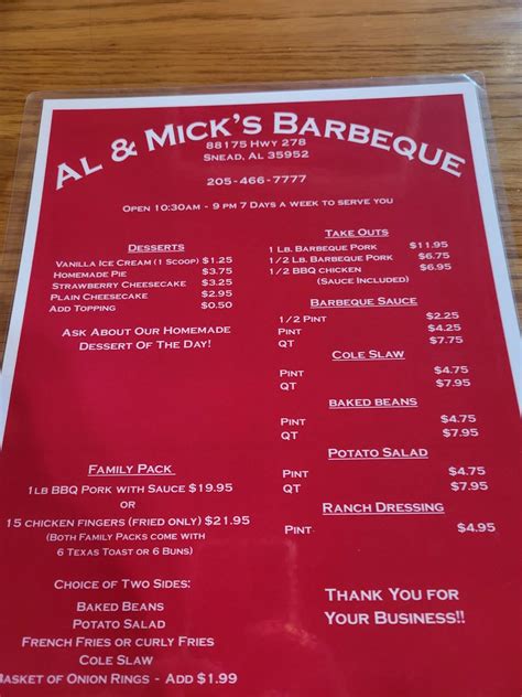 Al And Micks Menu. Check out our best lists for mexican, asian or italian in enterprise. Share it with friends or find your next meal.