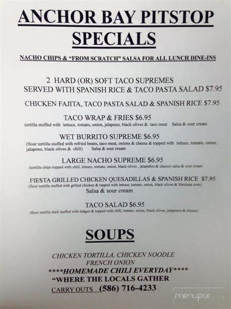 Anchor Bay Pit Stop Diner Home New Baltimore, Michigan Menu
