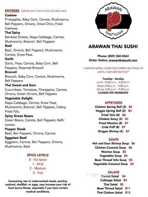 Arawan Thai Sushi Home Cold Spring, Kentucky Menu, Prices