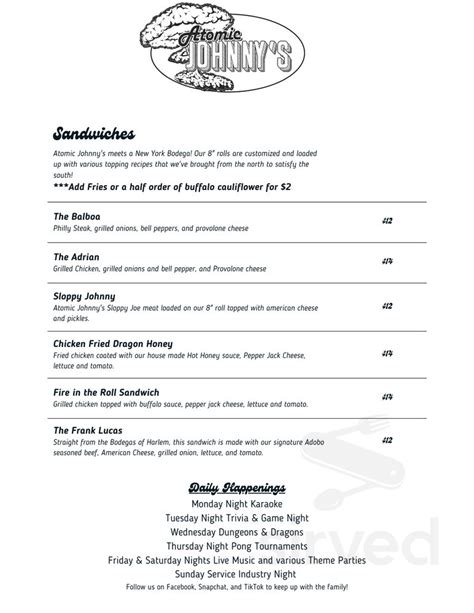 Web atomic johnny's food llc « back to gadsden, al. Web view the online menu of atomic johnnys and other restaurants in gadsden, alabama. Web you must log in to continue. Browse the menu, view popular items, and track your order. Web use your uber account to order delivery from atomic johnny's burger bar in gadsden. Atomic johnnys « back to gadsden, al. Web atomic johnny's broad street: Web atomic johnny’s serves their unique take on traditional drinks and bar food. Setlist.fm > artists > a >. Lihat 3 ulasan objektif tentang atomic johnny's, yang diberi peringkat 3 dari 5 di tripadvisor dan yang diberi peringkat no.81 dari 118 restoran di.