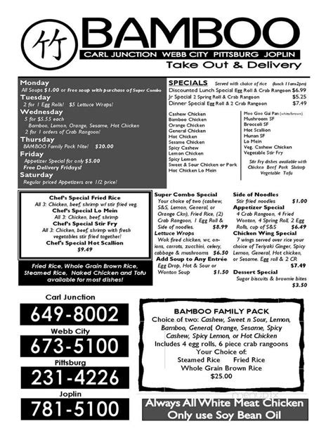 Bamboo Carl Junction Menu. Web bamboo, carl junction: By using this site you agree to zomato's use of cookies to give you a.
