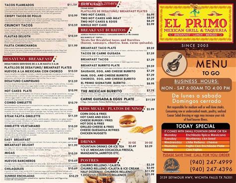 Barbacoa El Primo Menu . Web barbacoa el primo llc. Lunch tacos with asada, pastor, barbacoa, lengua and more, burritos, tortas,.