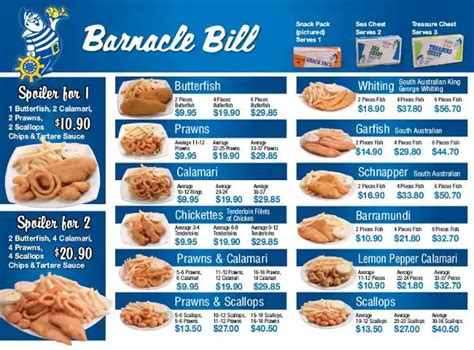 Web barnacle bills dinner menu fried butterfly shrimp batter dipped crispy fried shrimp with our special seasoning served with steak fries and slaw. Web rolls & sandwiches steamed clams w/ butter broth 34. Thank you for ordering directly only from this website and not through any third parties, this helps us keep our costs low so we can focus on quality ingredients and great service while growing our business. You are free to download the barnacle bill's menu files. Shrimp cocktail price per shrimp 4.50 ea. Lobster roll mkt tuna salad roll. Calamari rings, carefully breaded with barnacle bill's secret recipe and fried to perfection. Served with saffron rice and mixed veggies. (6) $10.90 (9) $13.95 (12) $17.95 mahi mahi oh my! Web menu added by the restaurant owner august 26, 2020.