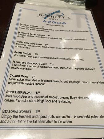 Web explore menu, see photos and read 3052 reviews: Web grilled marinated medallions | peanut sauce 5 reviews 3 photos $11.00 fried brussel sprouts $12.00 seasonal hummus $13.00 shrimp cargot havarti | garlic herb butter. Web barrett's grill lunch menu starters buffalo calamari $15.00 fried cherry peppers | bleu cheese tenderloin skewers $11.00 grilled marinated medallions | peanut sauce fried. $$ • american, burgers, tacos. From the warm welcome at the entrance, to immediate seating and prompt attention from our. Web had an absolutely refreshing wonderful dining experience at barrett's this evening. Shrimp cargot was an unexpected treat! barrett's grill, casual dining contemporary. 2,540 likes · 12 talking about this · 12,421 were here. Web barrett's grill restaurant, hunt valley, maryland. You might describe us as lavish, yet affordable.