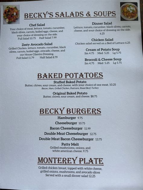 Web menu of becky's drive in restaurant, carlsbad, carlsbad. Web menu of becky's drive in restaurant, carlsbad, carlsbad. Sunday, february 12th, 2023 to saturday, march 11th, 2023 > sun mon tue wed thu Sunday, january 22nd, 2023 to saturday, february 18th, 2023 > sun mon tue wed Substitute french fries for $2,. Portland, me 04101 207•773•7070 serving breakfast, lunch, and dinner on portland's waterfront since 1991 Web lunch & dinner — becky's diner lunch & dinner served 11 am to close all sandwiches & burgers served with potato chips & pickle spear. Butter, sour cream, cheddar, bacon, chives. Web becky's diner 390 commercial st.