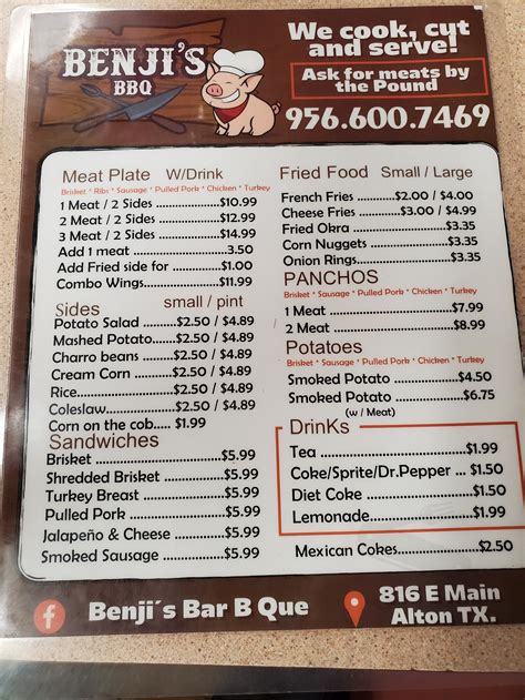 Benji's Bbq Menu . With the house specialty fajitas,we used the both traditional and untraditional recipes, sourcing the. Menu view menu additional dining info delivery yes payment credit cards accepted parking good for kids attire casual alcohol no reservations no.