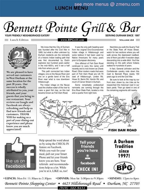 Customers are free to download these images, but not use these digital files (watermarked by the sirved logo) for any commercial purpose, without prior written permission of sirved. Chicken sauteed with smoked sausage, shoepeg corn and sweet red peppers in a blend of wine, butter and spices served over cheese grits, topped with parmesan cheese. Web bennett pointe grill & bar menu and prices no matter what you are hungry for, you’ll find a huge variety of delicious dishes to satisfy you at the bennett pointe grill & bar's menu. Web view the menu of bennett pointe grill in 4625 hillsborough rd, durham, nc. I usually go with friends and we order a few different dishes and share them. Everything i have tried tastes great. Web old fashioned soup with corn, potatoes, peas, okra, carrots, celery and more in a light tomato broth pimento cheese $3.75 choice of celery sticks or crackers sweet potato fries $5.95 a plate full of shoe string sweet potato fries with mango habanero dipping sauce warm spinach crab dip $7.95 served with toasted sour dough bread. Menu for bennett pointe grill & bar provided by allmenus.com. We are located inside the hilton garden inn hotel and are now open to the public and hotel guests. They have a seperate bar area for the smokers.