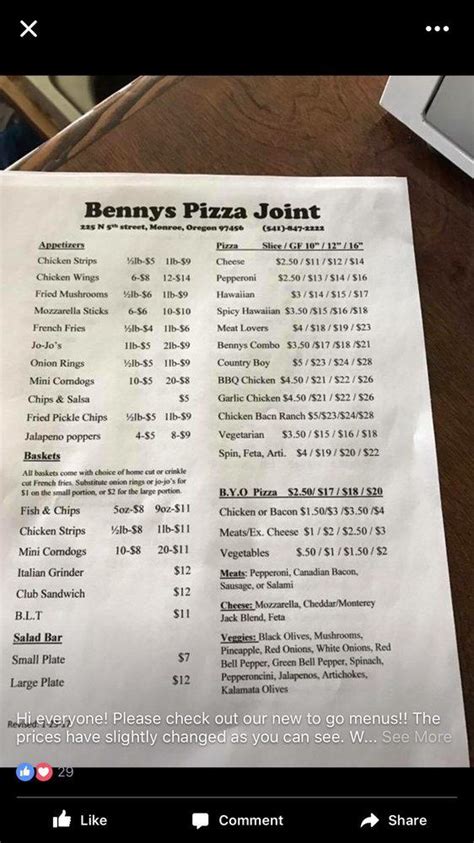 More home menu reviews photos follow menu business info pizza. Web bennys pizza joint 4.7 129 reviews · pizza place send message hi! Pizza, wings, appetizers, and cold beer. Web #1 of 1 pizza restaurant in monroe proceed to the restaurant's website upload menu menu added by the restaurant owner december 23, 2020 menu added by. Ordered beers from a good selection and a country boy 16 pizza for 3. The juliano family opened this local haunt in 1977. Bennys pizza joint, monroe, oregon. Web bennys is a small pizza joint in monroe. Web benny’s pizza skins a personal pizza crust topped with potatoes, cheddar & provolone cheese, bacon, red onion, chives, and a side of sour cream 12.99 spinach dip our. See restaurant menus, reviews, ratings, phone number, address, hours, photos and maps.