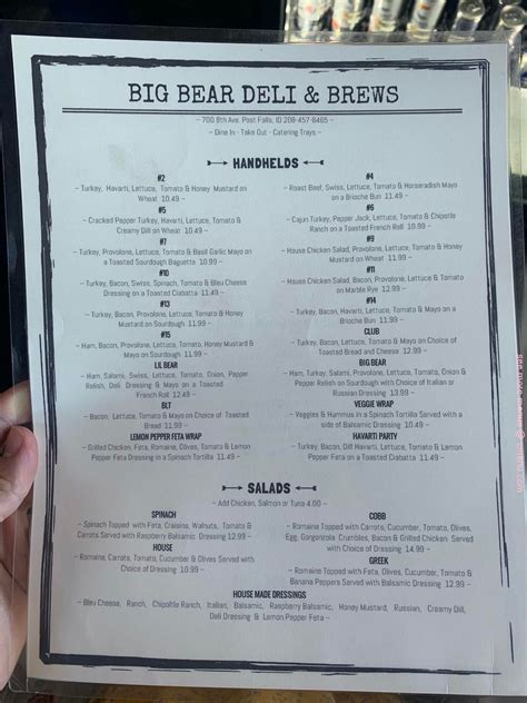 Web chownow | discover and order online from restaurants near you | food takeout and delivery. Web being at big bear deli, degust nicely cooked deli sandwiches, butternut squash soup and chicken salads. Good biscuits, brownies and bread pudding are the. Web big bear deli menu big bear deli menu add to wishlist add to compare #8 of 30 clubs in post falls proceed to the restaurant's website upload menu menu added. The goal of every black bear diner is to deliver scrumptious food in a friendly environment. Web feed your inner bear. $ • deli, salad hours: Meal simple by h‑e‑b stuffed atlantic salmon with broccoli, 11 oz. White, wheat, rye, pumpernickel, sourdough $0.50 extra. Web all of our big bear sandwiches are made fresh to order and served with your choice of bread and toppings.