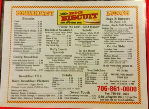 The Big Biscuit Barn Home Rossville, Menu, Prices