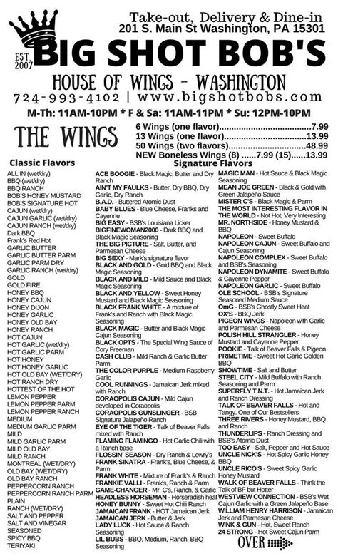 Web the big dipper fresh steak meat, chicken tenders, fries, provolone, mozz and cheddar cheese. If you want great wings this. Roxys ice cream & italian ice. Please enter your address to find a location near you. Big shot bob’s house of wings, home of the soldier and the. 1,602 likes · 810 were here. Web gold bbq and jerk ace boogie black magic, butter and dry ranch ain't my faulks butter, dry bbq, dry garlic, dry ranch all in dry mix of all dry seasonings all in wet a mix of. Web menu big shot bobs menu menu items may vary across restaurant locations. Comes with 2 sauces of your choice for dipping Do big shot bobs cater to vegetarians?