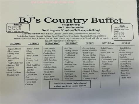 Bj Country Buffet Home North Augusta, South Carolina Menu, Prices