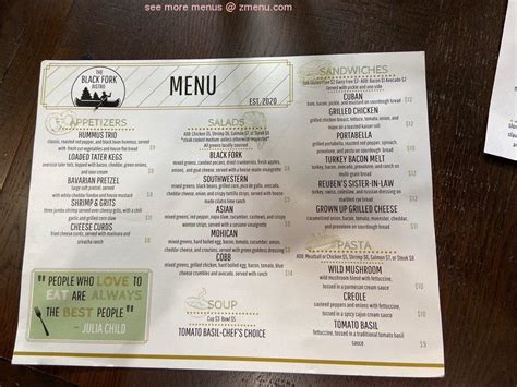 Black Fork Bistro Menu . The black fork bistro is located in the heart of mohican country on west main street in downtown. Sita ram ka channey with 2 pc.