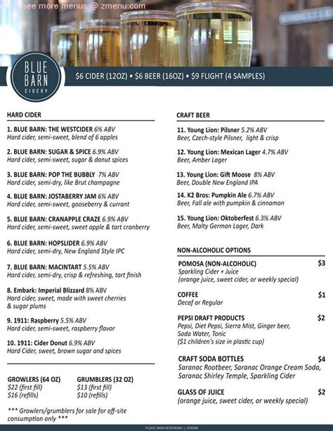 Blue Barn Cidery Menu . We offer picturesque ceremony areas as well as a stunning reception space. At blue barn cidery, guests can order delicious cider, craft beer or wine.