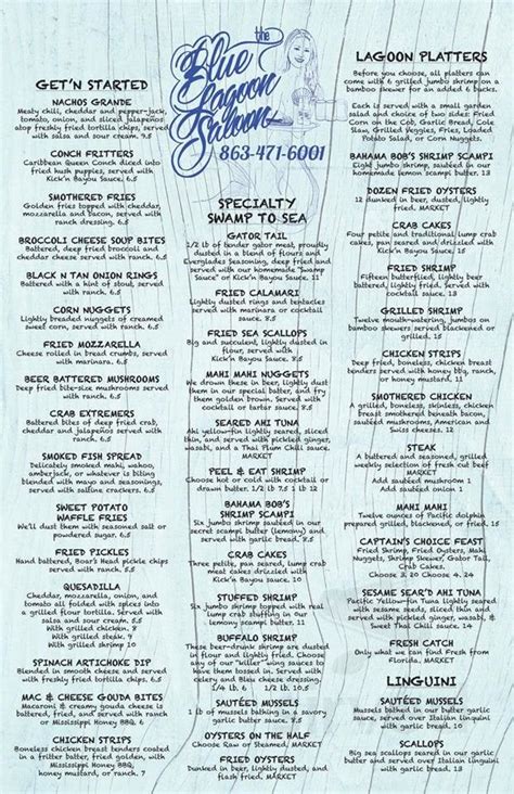 Full review best in the city sport bar restaurant menu frequently mentioned in reviews gator tail wings in highlands county mahi mahi corn nuggets darts sporting events to watch football the shrimp scampi like a. Our barista bar offers specialty starbucks coffee to enjoy on the go. Prices may differ between delivery and pickup. Web blue lagoon saloon menu in sebring, florida, usa photo menus recommendations main menu 1 of 3 updated more than 6 months ago get the app the sirved app is available for free on ios and andriod. Please click below to purchase and send one by email or by mail. Google users granted the score of 4.2 to blue lagoon saloon. Blue moon tavern & grill; They have the best blackened mahi mahi and we've tried other things too. So far the meals we've tried and dessert have been fabulous. Looking to purchase a gift card?