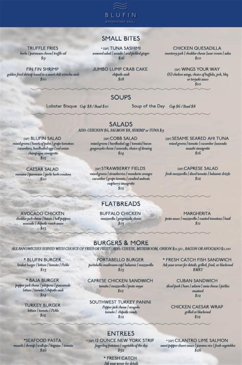 Blufin Waterfront Grill Menu. Web salads blufin salad $12.00 mixed greens, hearts of palm, grape tomatoes cucumbers, hardboiled eggs, red onion, and champagne vinaigrette cobb salad $14.00. Web blufine burger brisket burger, lettuce, tomato, and pickle.