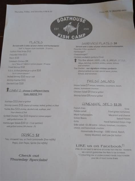 612 n main st, cross hill, sc, 29332. Web boathouse fish camp | facebook boathouse fish camp southern restaurant call now more home menu photos videos follow menu business info southern · seafood ·. Web boathouse fish camp is located at 612 n main st, cross hill, sc 29332, cross hill, united states, view boathouse fish camp reviews, location, photos or phone +18649984444. We use only the highest quality certified black angus beef and the freshest ingredients in our. Web #1 of 3 seafood restaurants in cross hill upload menu menu added by users september 30, 2022 menu added by users march 29, 2022 the restaurant information including the boathouse fish camp menu items and prices may have been modified. Web fish poultry chicken catfish salads flounder coleslaw scallops seafood prawns fried prawns pies macaroni crabs cheese baked potatoes meat fries onion strings. Green leaf lettuce, carrots, purple cabbage,. Boat house grill, lake travis area; At the boathouse bar and grill we take great pride in our burgers. Web menu options are varied and include seafood platters with two sides and hushpuppies, sandwich plates also with two sides and hushpuppies, and fresh salads.