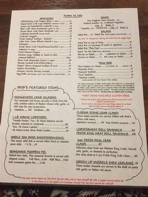 Web in the late 80’s, bob chinn’s opened additional seating on the porch and eventually became a 650 seat restaurant. Web the menu for bob chinn's crab house may have changed since the last user update. All menu items are subject to availability. Customers are free to download these images, but not use these digital files (watermarked by the sirved logo) for any commercial purpose, without prior written permission of sirved. Currently in the top 100 grossing restaurants in america, bob chinn’s has become a restaurant industry icon by providing the freshest food at great prices. N/a abv • n/a ibu • blue moon brewing company •. American deli menu applebee's menu. Web bob chinn's signature garlic rolls 83 photos 436 reviews $5.00 27 photos 122 reviews $14.00 maryland crab cake nuggets 17 photos 63 reviews $20.00 halibut 19 photos $26.00 blue crab claws 11 photos 53 reviews $160.00 32 oz. Web bob's slice of paradise 15 photos 24 reviews $20.00 lobster roll sandwich 16 photos 34 reviews $19.00 swordfish 22 photos 34 reviews $5.00 seafood gumbo 8 photos 35 reviews $14.00 oysters rockefeller 16 photos 24 reviews website menu full menu location & hours 393 s milwaukee ave wheeling, il 60090 get directions edit business. Sirved does not guarantee prices or the availability of menu items.