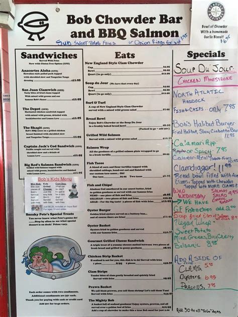 Menu at Bob's Chowder Bar & BBQ Salmon, Anacortes