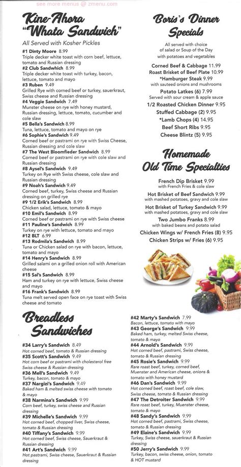Boris's deli is well known for its great. 4 people suggested huqqabaz (updated january 2023) Web you may be offered such food as good corned beef sandwiches, pastrami and noodle soups, come here and try them. Web 53 faves for boris's deli from neighbors in west bloomfield, mi. Web menu view menu additional dining info delivery no delivery payment accepts credit cards parking good for kids attire casual alcohol reservations price point $ wifi no outdoor. Web boris's deli restaurant west bloomfield township location • boris's deli restaurant west bloomfield township address • boris's deli restaurant west bloomfield. Web boris's deli menu in west bloomfield township, michigan, usa. Web up to 4% cash back kun. Web menu beverages beverages bottled water $0.99 can soda $0.99 salads salad 1 lb. We tried the soup and i had the corned beef on a onion roll with swiss.