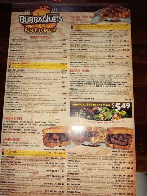 Web bubbaque's bbq only smokes the very best cuts of pork, beef and chicken. Web smoked chopped chicken topped with melted cheddar, bacon, onion rings and tractor grease $9.99 + hillailly deluka $7.49 sides macaroni and cheese $3.49 baked beans $3.49 cole slaw $3.49 fried okra $3.49 french fries $3.49 corn on cobb $3.49 broccoli $3.49 collard greens $3.49 sweet tartar fries $3.49 baby bubbas jr pulled pork dinner $6.99 French fries, macaroni and cheese, sweet potato fries, baked beans, coleslaw. Web 6581 state road 70 e, bradenton, fl 34203, usa; Juicy and delicious with award worthy flavors. Web bubbaque's bbq bradenton, bradenton, florida. $15.59 chopped bbq chicken (sammich) rubbed, smoked, and chopped boneless chicken, lightly sauced and piled real high. All of the side dishes are made fresh every day using the best old southern ingredients and recipes. See restaurant menus, reviews, ratings, phone number, address, hours, photos and maps. Learn more about offering online ordering to your diners.