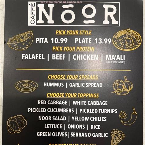 Web popular items the most commonly ordered items and dishes from this store plate $14.99 pita $11.99 hummus $5.99 rice $4.99 baklava $5.99 ma'ali (fried vegetables) $6.99. Web online menu of caffe noor, simi valley, ca home ventura county ventura county simi valley caffe noor view menu read reviews write review directions caffe noor ($). Caffé noor, the new revolutionary luxury coffee shop with a fundamental difference. Mediterranean food built your way. 380 likes · 14 talking about this. Served with fries $19.99 fish & chips tilapia fried, season served with french fries. View menu and reviews for caffe noor in. Caffé noor 93 cafes $$ “to summarize, caffe noor is the mediterranean version of chipotle. Web view the online menu of caffé noor and other restaurants in simi valley, california. 67 likes · 35 talking about this · 22 were here.