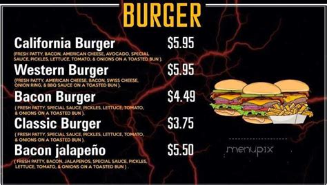 California Burgers Burger Menu Celebrity Burgers, Sides & Soda