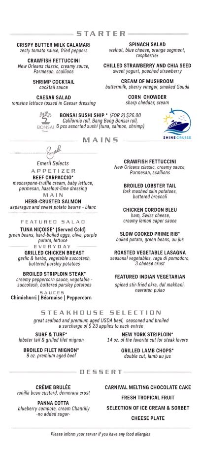 Carnival Glory Menu 2022 . You’ll find this menu on the. They reflect promised price increases for.