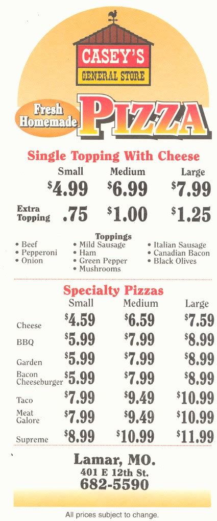 Casey's « back to milan, il. Be sure to check out their. Web casey's taco pizza starts with refried beans and salsa, beef or chicken, mozzarella cheese, and is finished with lettuce, tomatoes, taco chips and cheddar cheese. Web this store does not support delivery orders, but you can still place a delivery order from a different store. Including their scrumptious salads that will surely leave you craving more. Web up to 4% cash back our ultimate hawaiian pizza starts with our classic marinara sauce and is topped with loads of ham, canadian bacon, juicy pineapple and real whole milk. Web view the online menu of casey's and other restaurants in milan, illinois. 1105 w 10th ave, milan, il. Casey's « back to milan, il. Web casey's general store offers several options to satisfy your cravings.