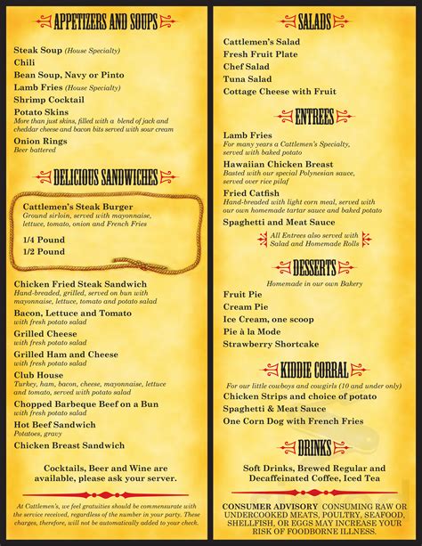 Cattlemen's Steakhouse Menu Show Low Dineries