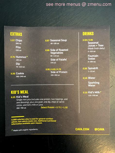 Cava Menu Wayne Nj. Find your favorite dish here! For the most accurate information, please contact the restaurant directly before visiting or ordering.