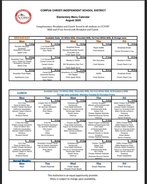 At a minimum, students must take items from three different food groups (components) and one must be a fruit or vegetable. Web ccisd police department communications curriculum and instruction district support food services purchasing and distribution special education student health services transportation athletics construction project management energy management. Web ccisd is transitioning to electronic delivery of report cards and progress reports. Web lunch meal students may choose up to one main dish, two fruits, two vegetables, and one milk. Elementary & intermediate snack food. At a minimum, students must take items from three different food groups (components) and one must be a fruit or vegetable. Sign in to your account create a new account view menus (as a guest) contact us! Please select your school allen el alternative h s ctr baker middle barnes el browne middle calk el carroll h s carroll lane el casa linda el central park el chula vista fine arts club estates coles el collegiate h s crockett el cullen middle Web corpus christi independent school district schools. Web the mission of i.w.