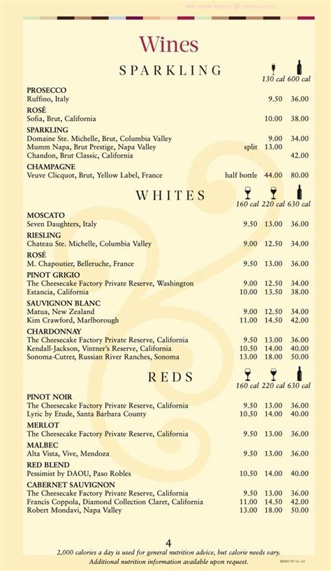 Cheesecake Factory Wine Menu . Their hot drinks include cafe latte, cafe mocha, factory hot chocolate, etc. Web the cheesecake factory bakery opened in 1972.