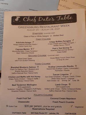 Menu of Chef Dato's Table, Latrobe, Johnstown