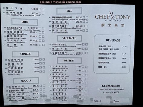 Online Menu of Chef Tony Dim Sum Restaurant, Arcadia, California, 91007