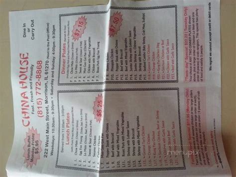 Da' bar ($$) bar food. Web china house restaurant ($$) chinese, sushi distance: Web menu is for informational purposes only. Web china house at 222 w main st a, morrison, il 61270. View reviews, menu, contact, location, and more for china house restaurant. For the most accurate information, please contact the restaurant. Menu items and prices are subject to change without prior notice. Get china house reviews, rating, hours, phone number, directions. Web 222 w main st. Web restaurant menu frequenty mentioned in reviews takeawayfriendly staffgreat servicelunch seafoodchickenpoultrydumplingscrab rangoonteriyaki chickenfried. Web order online from china house in morrison, online menu , coupons and reviews.