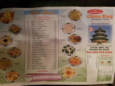Web china king 3361 highway 72 221 e greenwood, sc 29649 30.8 mi china king 2744 n lake dr columbia, sc 29212 39.6 mi china king 420 mcnulty st, ste h blythewood, sc. Web china king is located in spartanburg county of south carolina state. Web general tso's chicken (lunch) spicy. Search for other chinese restaurants in pacolet on the real. Check the newest china king menu with prices now! Get china king rkaufman & lynd reviews, rating, hours, phone number,. Sweet & sour chicken (lunch) this item can be ordered between. On the street of south carolina 150 and street number is 1413. This item can be ordered between 11:00 am and 3:00 pm. Best dishes at china king view all dishes these dishes from the china king menu are.