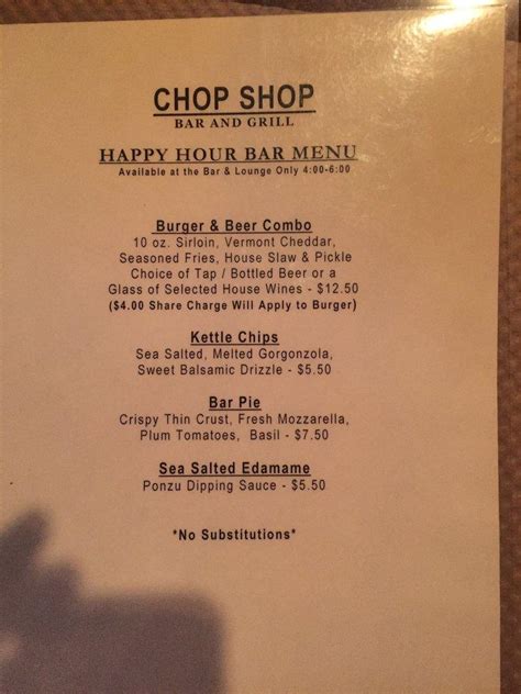 Chop Shop Smithtown Menu . Discover our extensive menu including such items as coffee that will bring you back for more. Not too dark, nor too light, the ambiance is great for intimate dining or for just having a few cocktails at the fairly good sized bar.