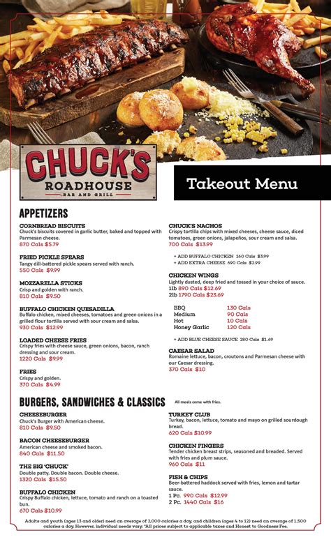 Chuck's Roadhouse Bar and Grill menu in London, Ontario