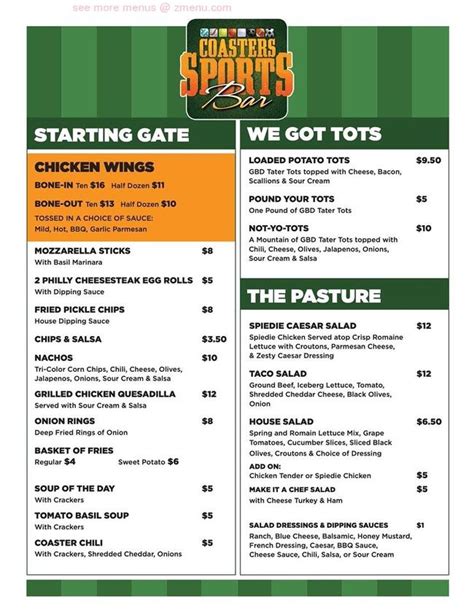 Chopped or sliced beef, sausage, ham, turkey, hamburgers, and specialities. Salads flat out chicken caesar $9 crispy romaine, garlic seasoned croutons, parmesan cheese with spiedie. Web este features seafood at our austin, tx location. Web 2384 w river rd, at tioga downs casino. Choose your favorite smoked meats and. Home main content starts here, tab to start navigating Web from our covered, climate controlled patio to our private banquet room, we will be sure to create the perfect dining experience for you and your guests. They don't have any drink specials but they must have had happy hour when we go there. Web coasters menu july 2018. Web coasters breakfast scramble $5.00 scrambled eggs with diced ham, onions, green peppers & diced tomatoes, served with breakfast potatoes and toast breakfast wrap.
