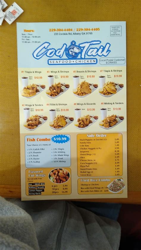 Web reviews for cod tail of albany september 2022 food was good a little expensive but good and hot when we got home.vegetarian options: Is cod tail a dashpass eligible store? Web pick two combo seafood dinner grilled seafood whole wing or fish by pcs chicken dinner cut wings boiled seafood appetizer side salad sandwich & philly desserts. 233 cordele road albany, ga 31705. Web 233 cordele road , albany ; Menu drinks specials catering order jobs facebook page. Web cod tail of albany menu has been digitised by sirved. Visit us cod tail of albany. 233 cordele rd, , albany. Web 1 pc cod fillet 2 pc flounder 3 pc perch 3 pc oyster 5 pc scallop 2 pc tilapia 3 pc whiting 3 pc whole wings 3 pc chicken tender 10 pc.