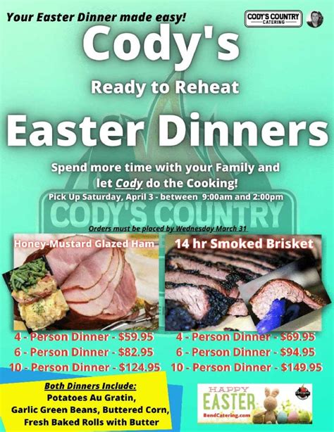 Cody's Easter Menu . Jumbo fresh wings done cody's way. Cody's is a new kitchen.