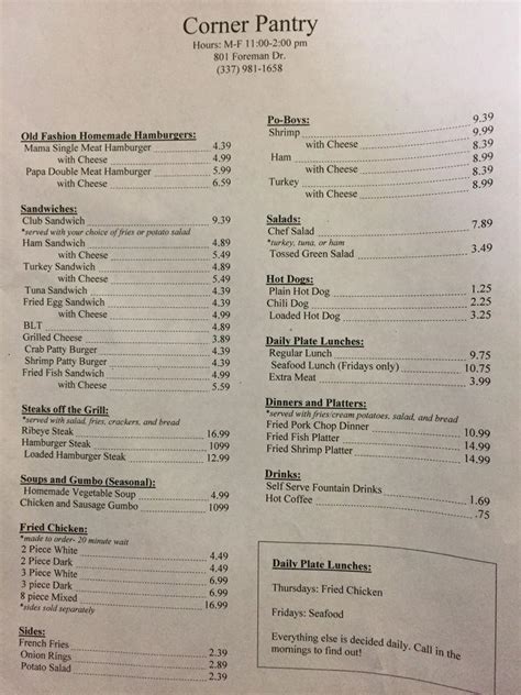 Web corner pantry, lafayette, lafayette | zomato home / united states / lafayette, louisiana / rest of lafayette / lafayette / corner pantry corner pantry 3.5 5 reviews burger,. Visit our online ordering to view full menus with up to date seasonal offerings. Pick ups are on wednesday november 23,. Web #228 of 1100 restaurants in lafayette proceed to the restaurant's website upload menu menu added by users september 30, 2022 menu added by the restaurant. Web i decided to get something to eat at the corner pantry after having a bad customer service experience at cafe 329. Southern / soul food restaurant cajun / creole restaurant burger restaurant. Web corner pantry has been in business for at least 40 years. The business is located in 801 foreman dr, lafayette, la 70506, usa. Web view our breakfast, pastries, and lunch menus. Web view the menu of the corner pantry grocery, restaurant, & catering in 801 foreman dr, lafayette, la.