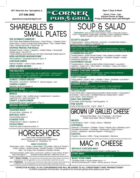 The Corner Pub and Grill Home Springfield, Illinois Menu, Prices