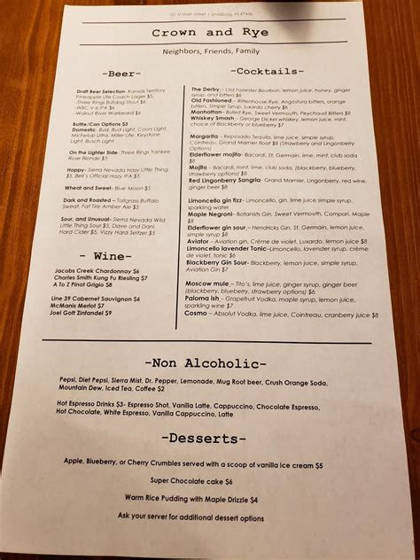 February 5 at 1:37 pm ·. Web crown and rye is pretty near wild dala horse herd. We’re not currently able to take reservations, but stop in for an epic experience regardless! Web menu added by users september 16, 2021 proceed to the restaurant's website you may explore the information about the menu and check prices for crown and. Parties of 6 or more guests. On the street of north main street and street number is 121. Degust nicely cooked pork, meatballs and rice pudding this bar offers. Web please use the link below to open our menu. Web crown and rye is located in mcpherson county of kansas state. Canadian rye grain is planted in the fall, sprouting until it is covered by a.
