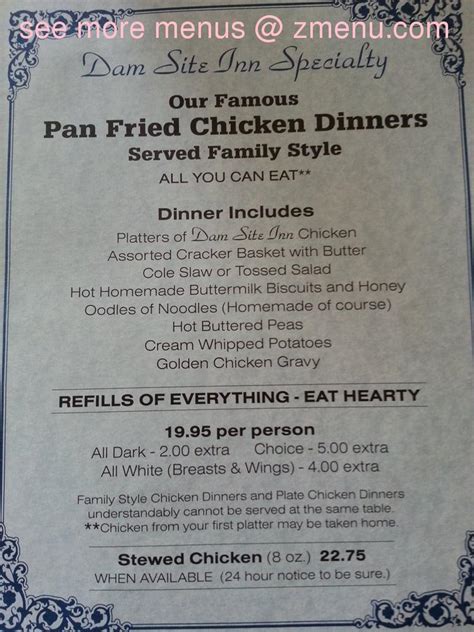 We are a fine dining establishment specializing in southern fried chicken served family style with a variety of. Dam site inn | brutus mi. With mustard seeds, layered with foie gras, enlivened with preserved lemon purée and a confetti of garden vegetables. Web seared rare tuna crusted. Web menu is for informational purposes only. Menu items and prices are subject to change without prior notice. Web we are a fine dining establishment specializing in southern fried. Web menu is for informational purposes only. May have been better lightly floured and pan fried. Web the dam site inn opened in august 1953, with the menu mirroring one used at a restaurant across the street called the maple river inn that opened in 1923 and was in business until 1947.